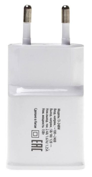 сетевое зарядное / для планшетов; для телефонов / 1 / отсутствует (нужен кабель) / белый / USB Type-A / 15.0 / да
