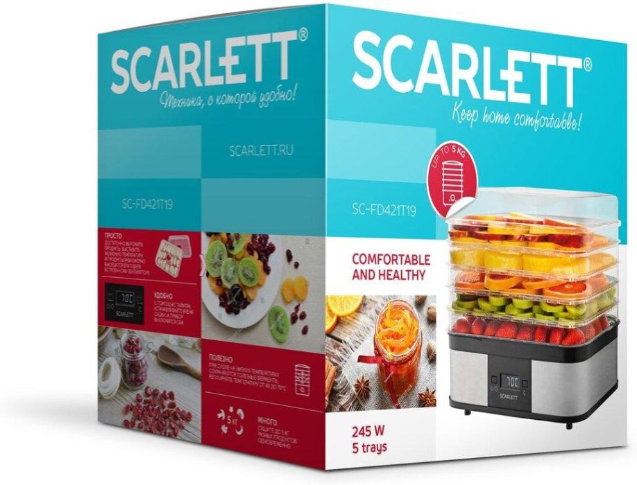 | Наименование полное (1С) | Сушилка для овощей и фруктов Scarlett SC-FD421T19 (245 Вт, 5 подносов, электронное управление, нижний нагревательный элемент, цвет сталь) |