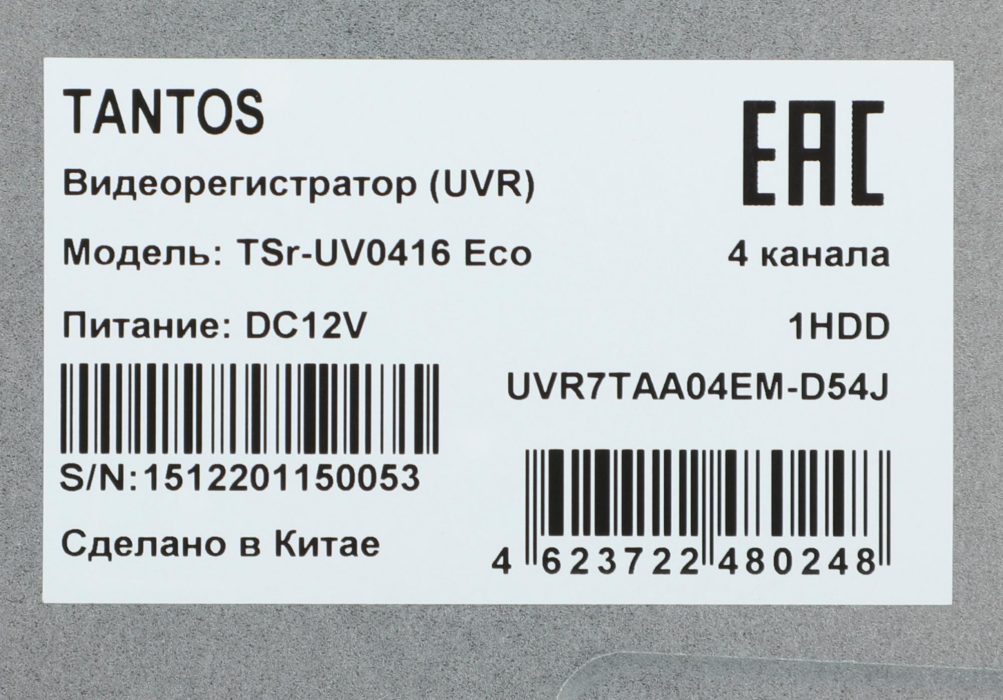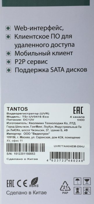 Видеорегистратор наблюдения Tantos TSr-UV0416 Eco